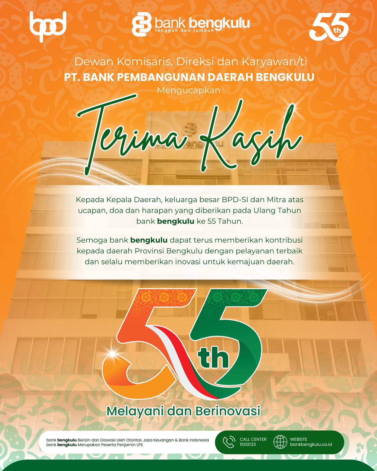 Uncategorized HUT Bank Bengkulu ke 55 Gelqr Upacara dan Pemotongan Tumpeng “Melayani dan Berinovasi “